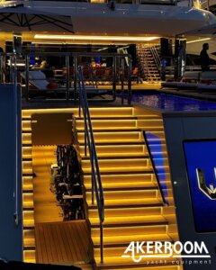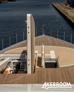 Acting as a one‑stop shop, Akerboom delivered all equipment solutions on board the custom‑built yacht. Together with De Voogt Naval Architects, Akerboom was involved from the earliest stages of exterior design, translating the client’s wish for open spaces and seamless boarding into reliable, crew‑friendly solutions.