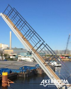 Akerboom’s contribution focused on a complex hull solution in which two platforms were positioned extremely close together. The challenge was resolved by combining both platforms into one large welded hull module, developed through close collaboration between Akerboom Yacht Equipment, De Voogt Naval Architects, Royal Van Lent Shipyard, NMC – Shipyard & Construction Company and Scheepswerf Slob. The completed module was transported by water from Leiden to Rotterdam, highlighting Akerboom’s long‑standing logistical capabilities along the River Rijn.