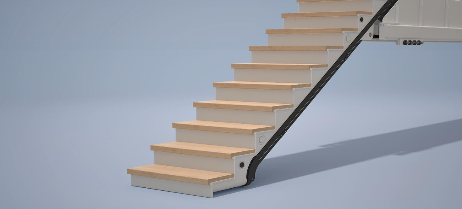 By using a housing in which the staircase is stored in the open position, the item is also highly suitable for delivery as a plug-and-play concept, minimizing work on board. Creating an open space, with no shades of a hatch is unique, and the threshold-free access adds extra comfort.